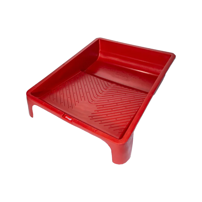 Bandeja plástica de buena resistencia, ideal para trabajos de pintura con rodillo. Su diseño ergonómico facilita la distribución uniforme de la pintura, reduce el desperdicio y mejora el rendimiento del rodillo gracias a su superficie texturizada en forma de “V”.